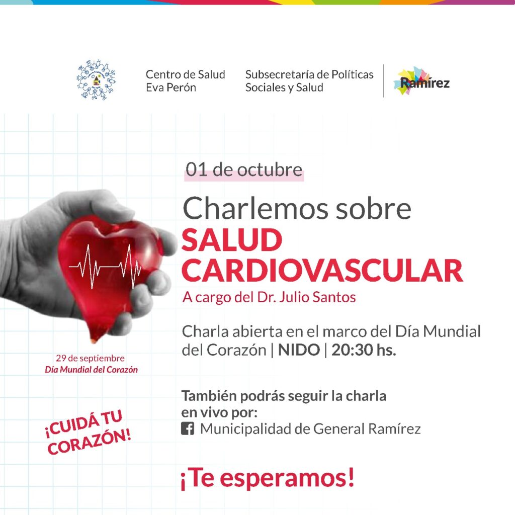 En el marco del Día Mundial de Corazón que se celebra cada 29 de septiembre, este viernes 1º de octubre en General Ramírez brindarán una charla sobre salud cardiovascular.
