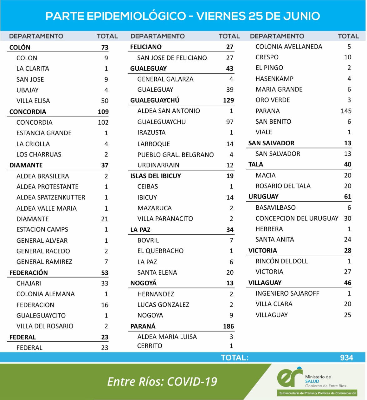 El área de Vigilancia Epidemiológica del Ministerio de Salud, confirmó que en Entre Ríos este viernes se registraron 934 nuevos casos de coronavirus.