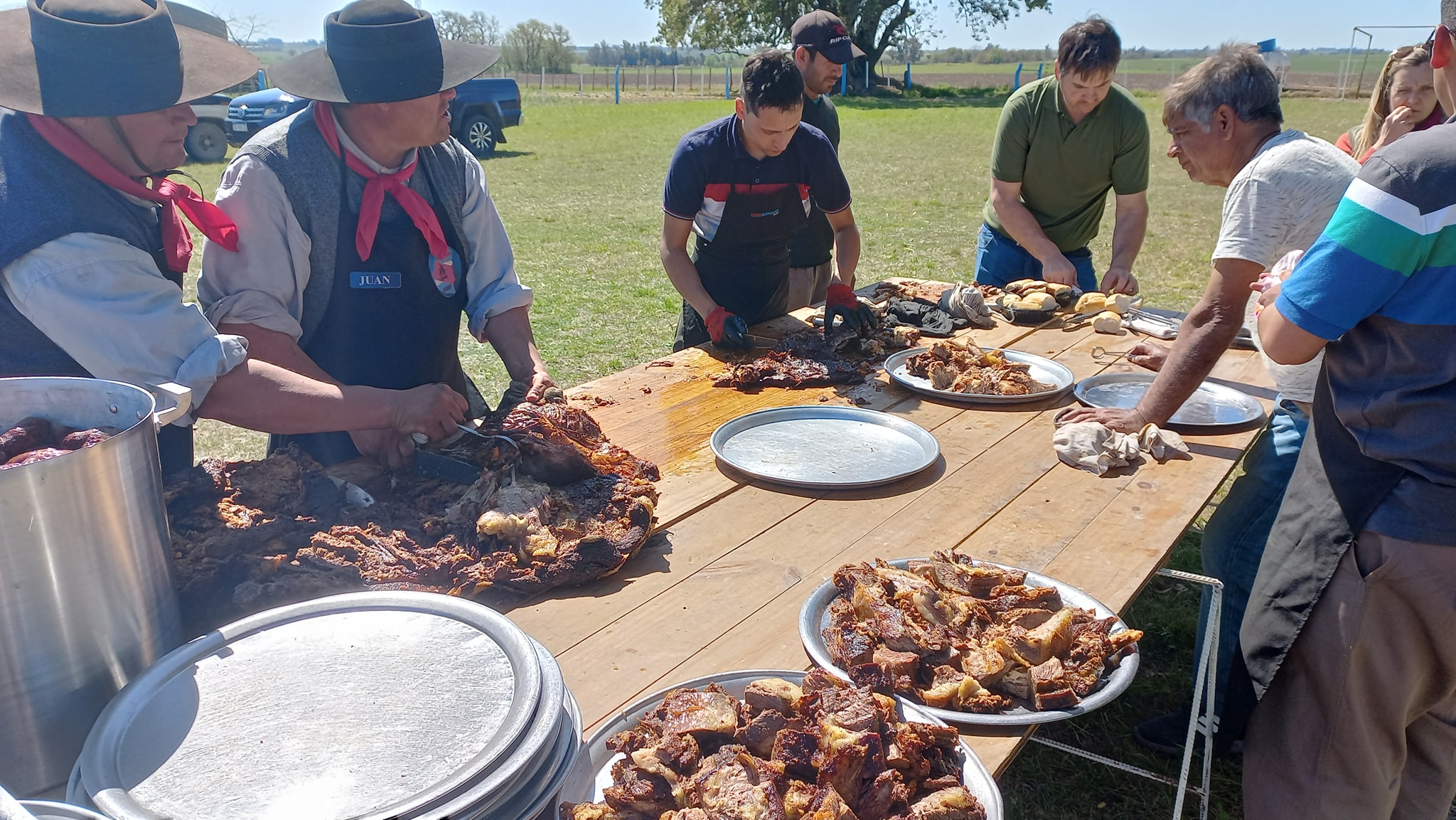 Bajo condiciones de tiempo ideales, se brindó un almuerzo compuesto por choricitos, costillar a la parrilla, ensaladas varias y postre helado.