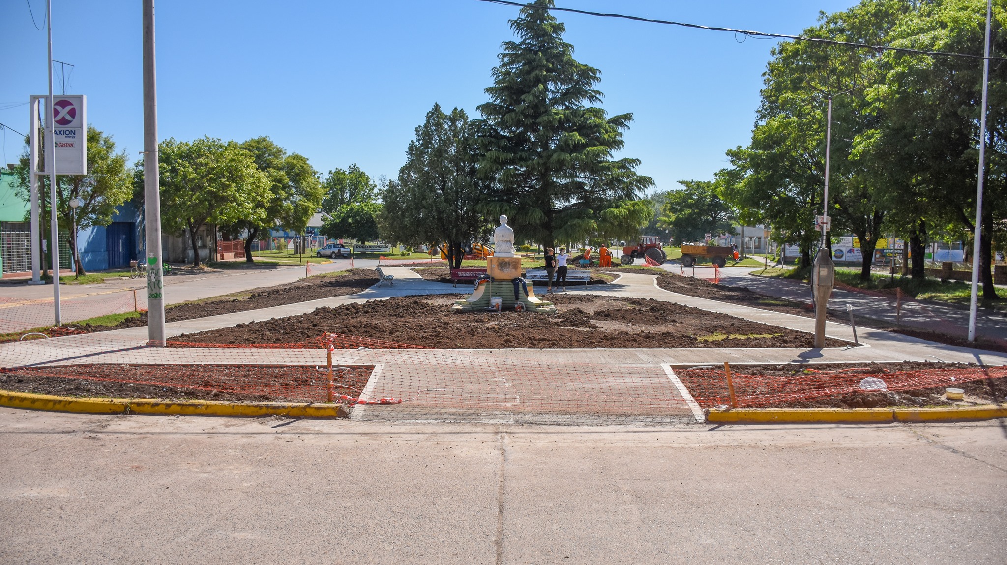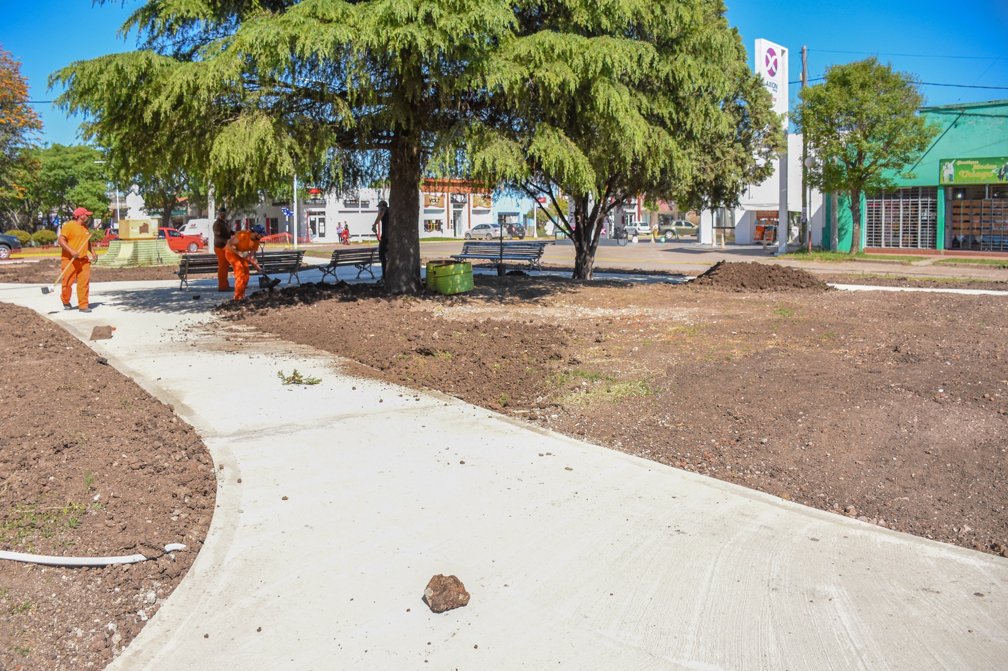 En el lugar se construyen nuevas veredas y rampas en todas las esquinas. A su vez se colocarán nuevos bancos y se plantarán de 180 ejemplares de plantas y flores que conformarán los nuevos canteros.