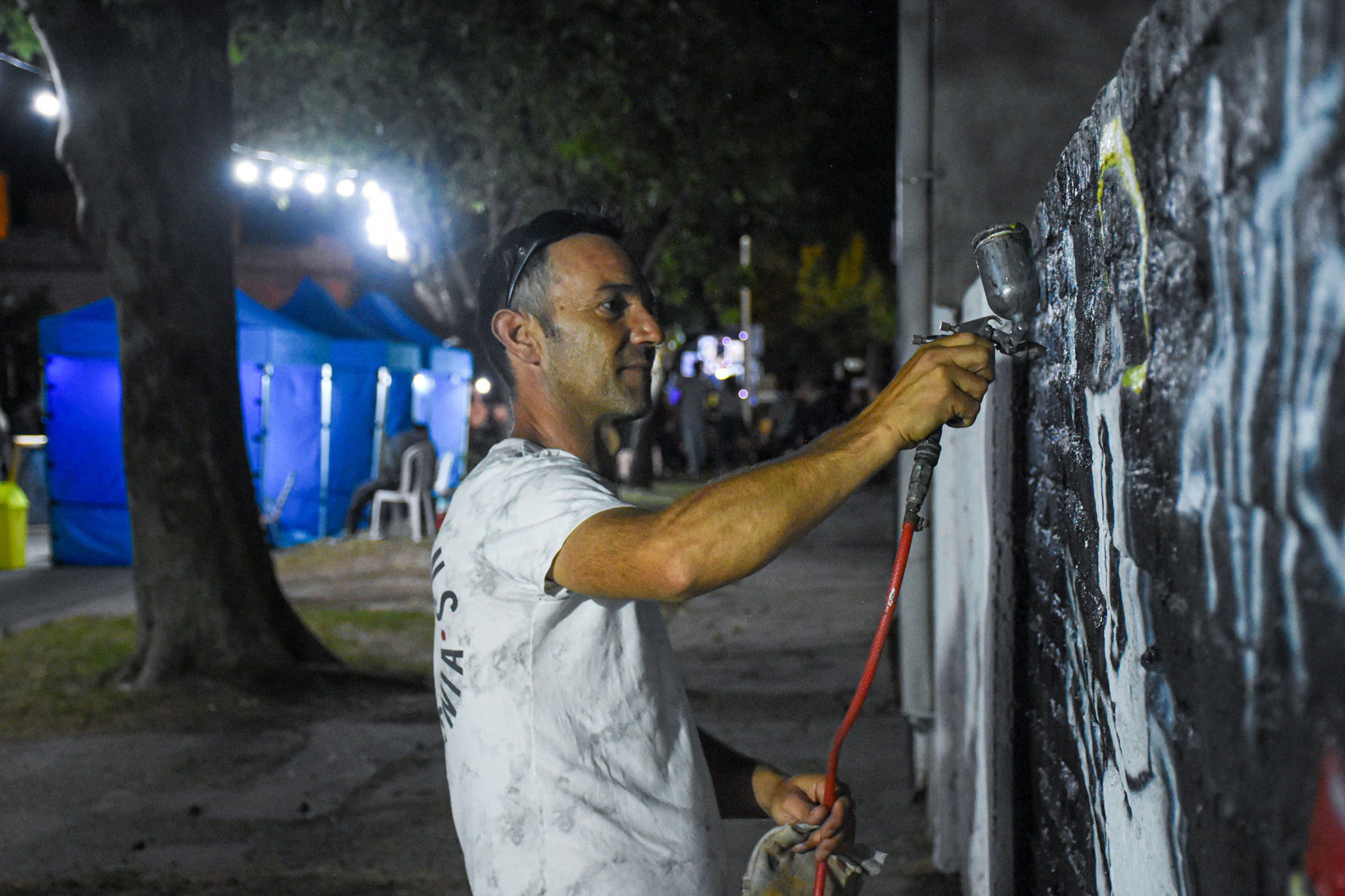 Mientras tanto, Matías Müller y Carla Chort continuaron pintando el mural homenaje a artistas del Rock Nacional y, al mismo tiempo, Sebastián Miguel Cóceres le siguió poniendo color a su mural «El paso del tiempo».