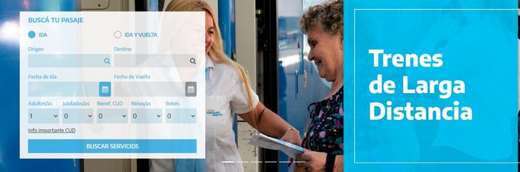 Para comprar los pasajes de tren se debe acceder al sitio argentina.gob.ar/transporte/trenes-argentinos/pasajes-larga-distancia