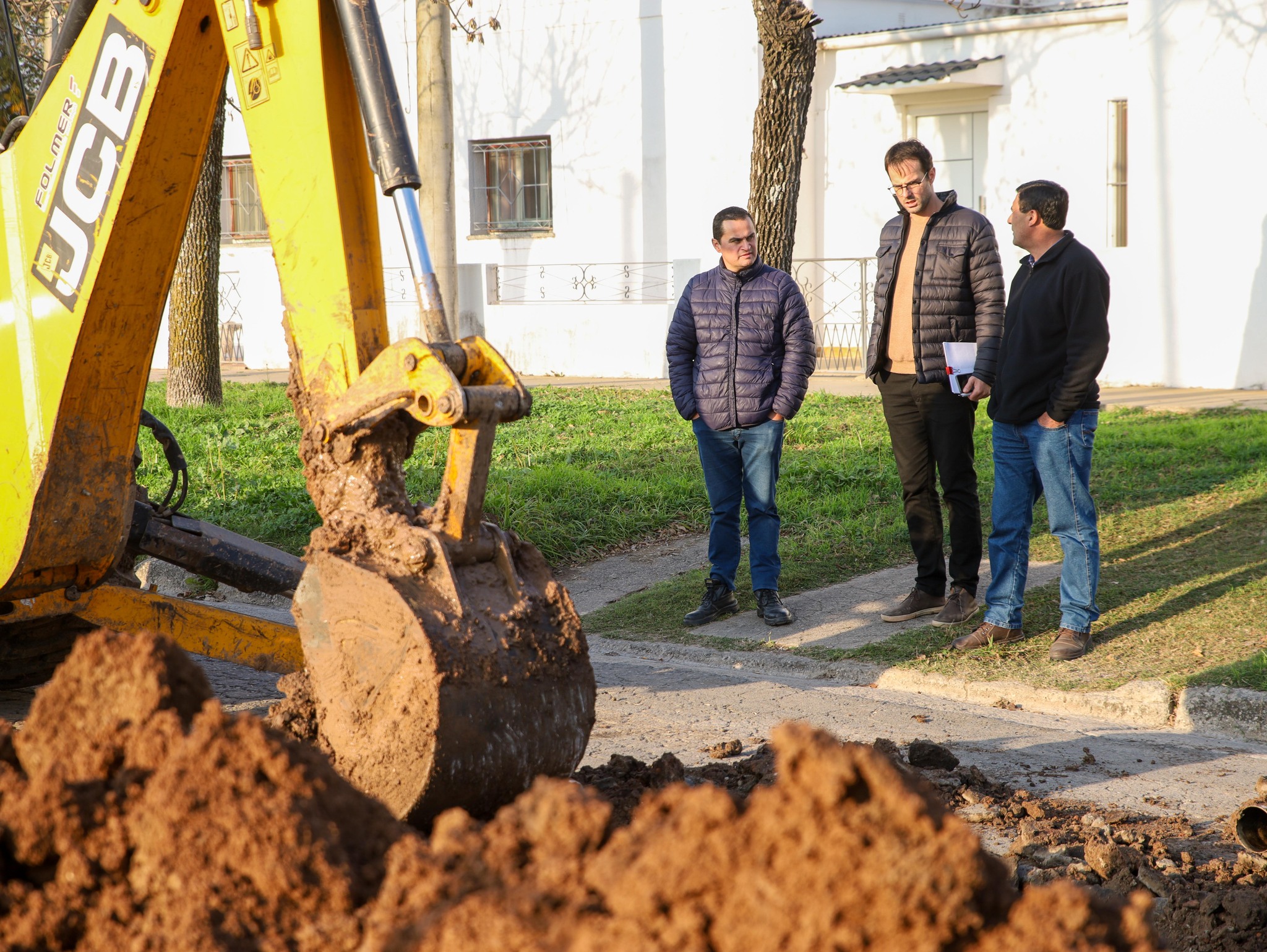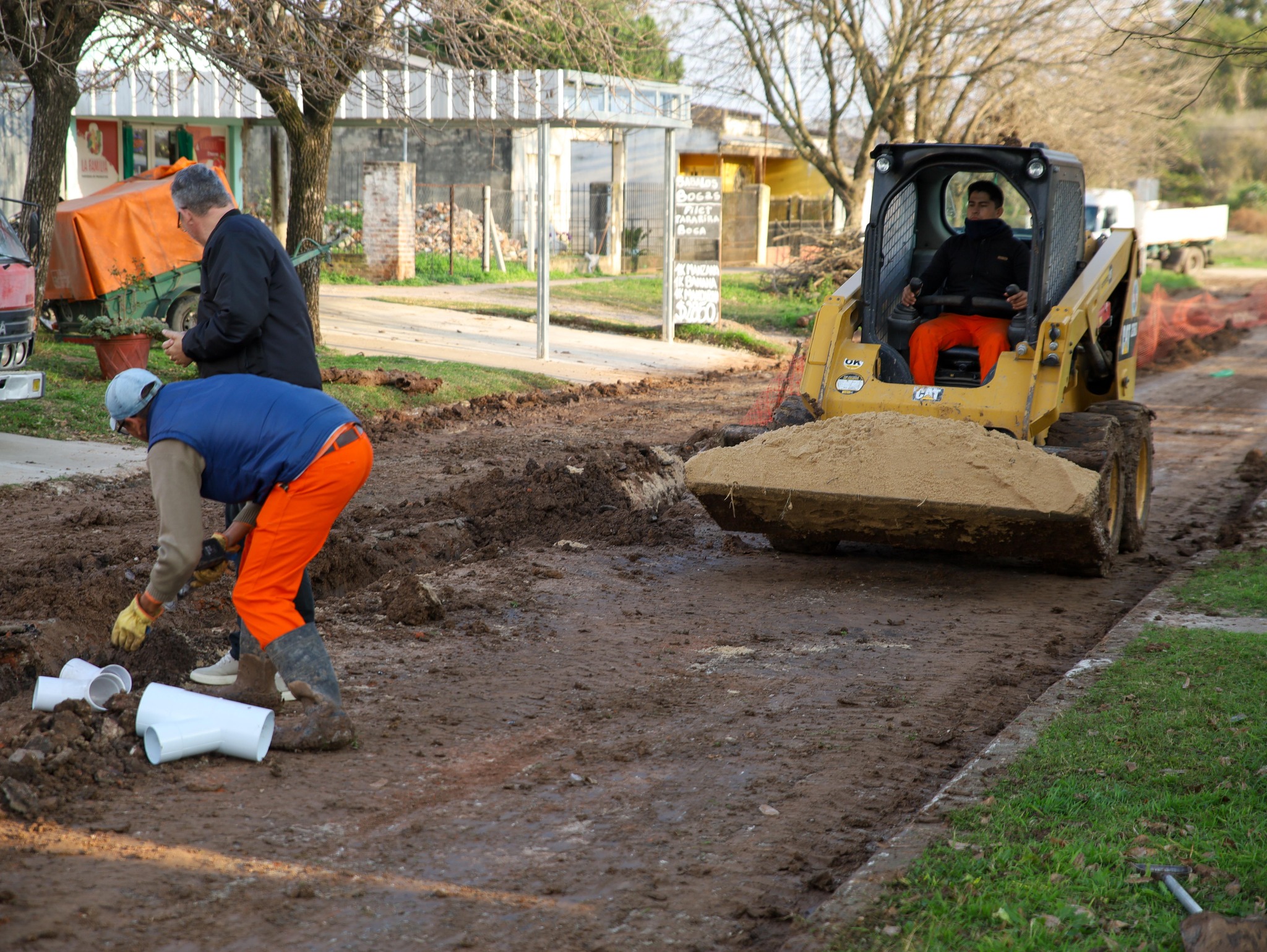 Previo a la colocación del hormigón, se realiza el recambio de cañerías de cloacas y preparación del suelo en el lugar.