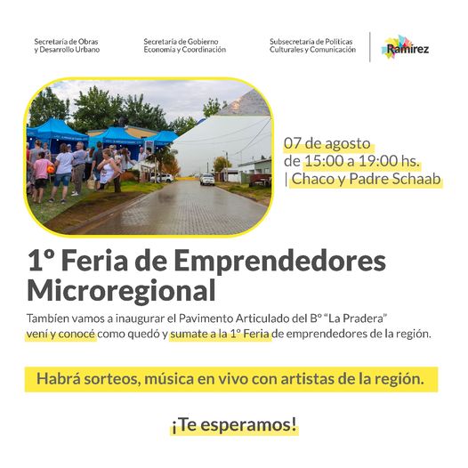Este sábado 7 de agosto en General Ramírez se realizará la primera feria con emprendedores de la región.