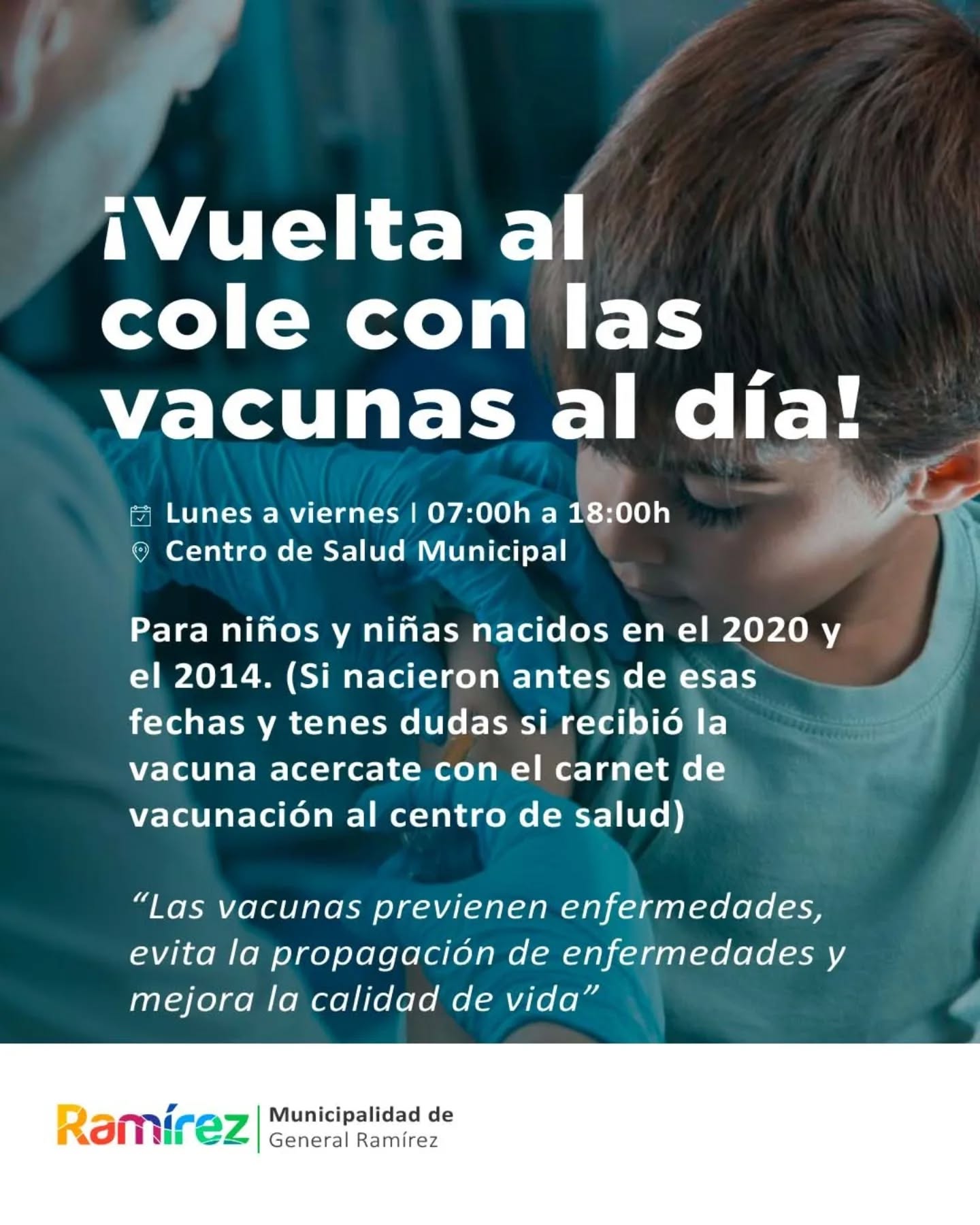 La Municipalidad de General Ramírez, a través de su Centro de Salud Municipal, ha lanzado una campaña de vacunación dirigida a niños y niñas nacidos en 2020 y 2014, con el objetivo de asegurar un regreso a clases saludable.