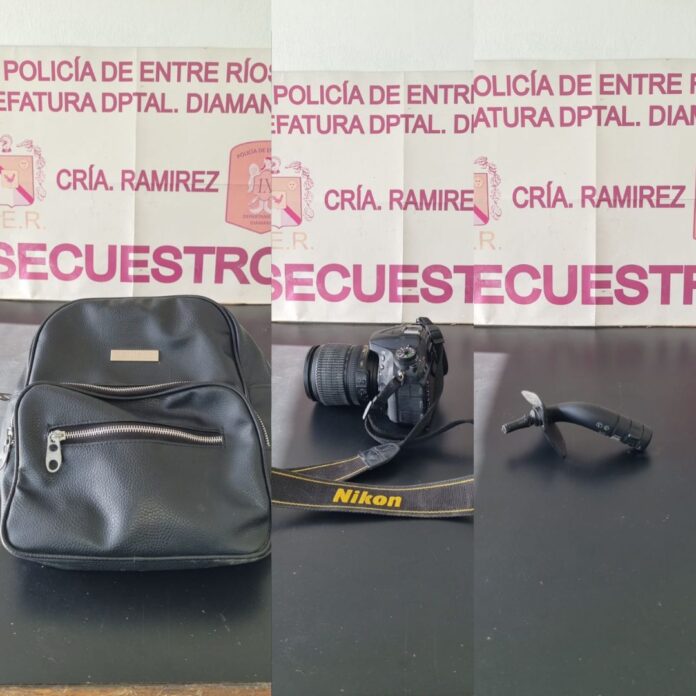 Según expresó a Informe Litoral el segundo jefe de Comisaría Ramírez, subcomisario Martín Figueroa, «en horas del mediodía tras el llamado de una vecina de calle Juan Pablo Segundo, se logró localizar abandonada en la vía publica, un bolso color negro que contenía en su interior una cámara fotográfica marca Nikon, con su respectiva tarjeta de memoria y accesorios plástico dañados del interior del automóvil de la damnificada. Elementos que fueron debidamente secuestrados y entregados a la denunciante. En tanto también en la vía publica abandonado se localizo la funda del teléfono faltante».