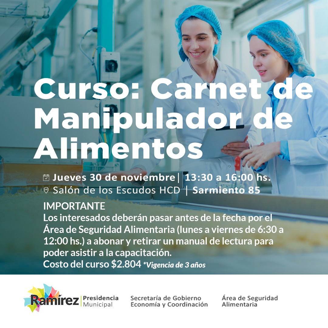 El área de Seguridad Alimentaria de General Ramírez organiza una nueva jornada para acceder al Carnet de Manipulador de Alimentos. Se trata de un documento obligatorio que reemplaza a la Libreta Sanitaria.
