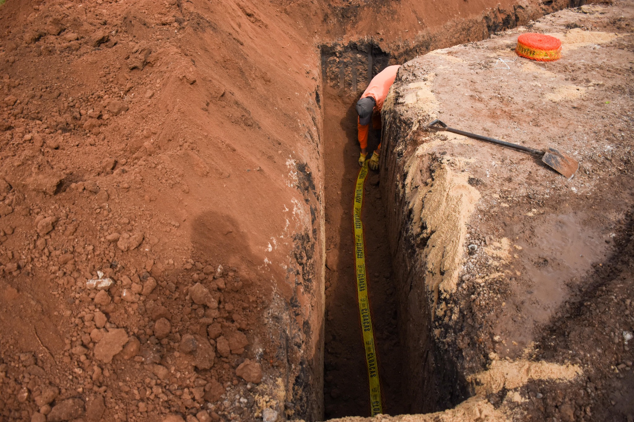 Las tareas incluyen la colocación de 200 metros de caños de PVC de 160, ya que la cañería anterior se encontraba colapsada y se desmoronó por los años que tenía.
