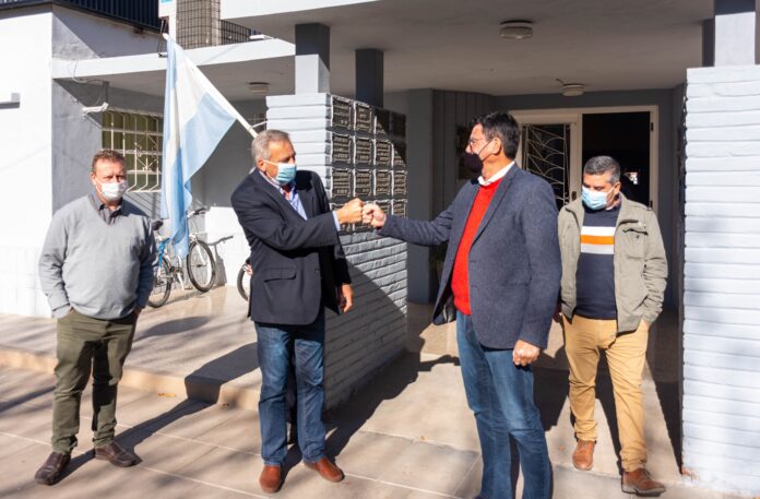Para concretar la obra, el intendente, Gustavo Vergara junto a integrantes del equipo de Gobierno firmó un convenio con su par de Viale, Carlos Weiss.