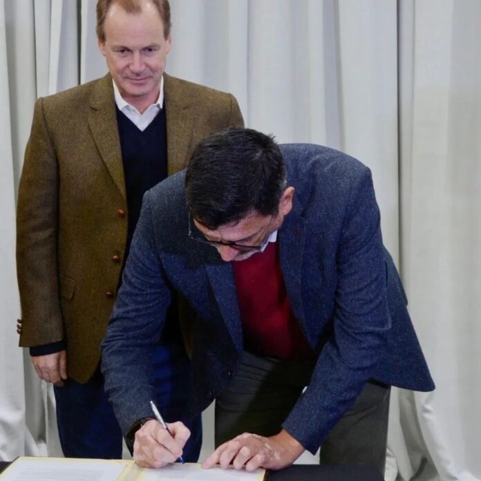 El presidente municipal de General Ramírez, Gustavo Vergara firmó un convenio con el gobernador Gustavo Bordet que permitirá seguir avanzando con la pavimentación de calle Islas Malvinas de esa ciudad del departamento Diamante.