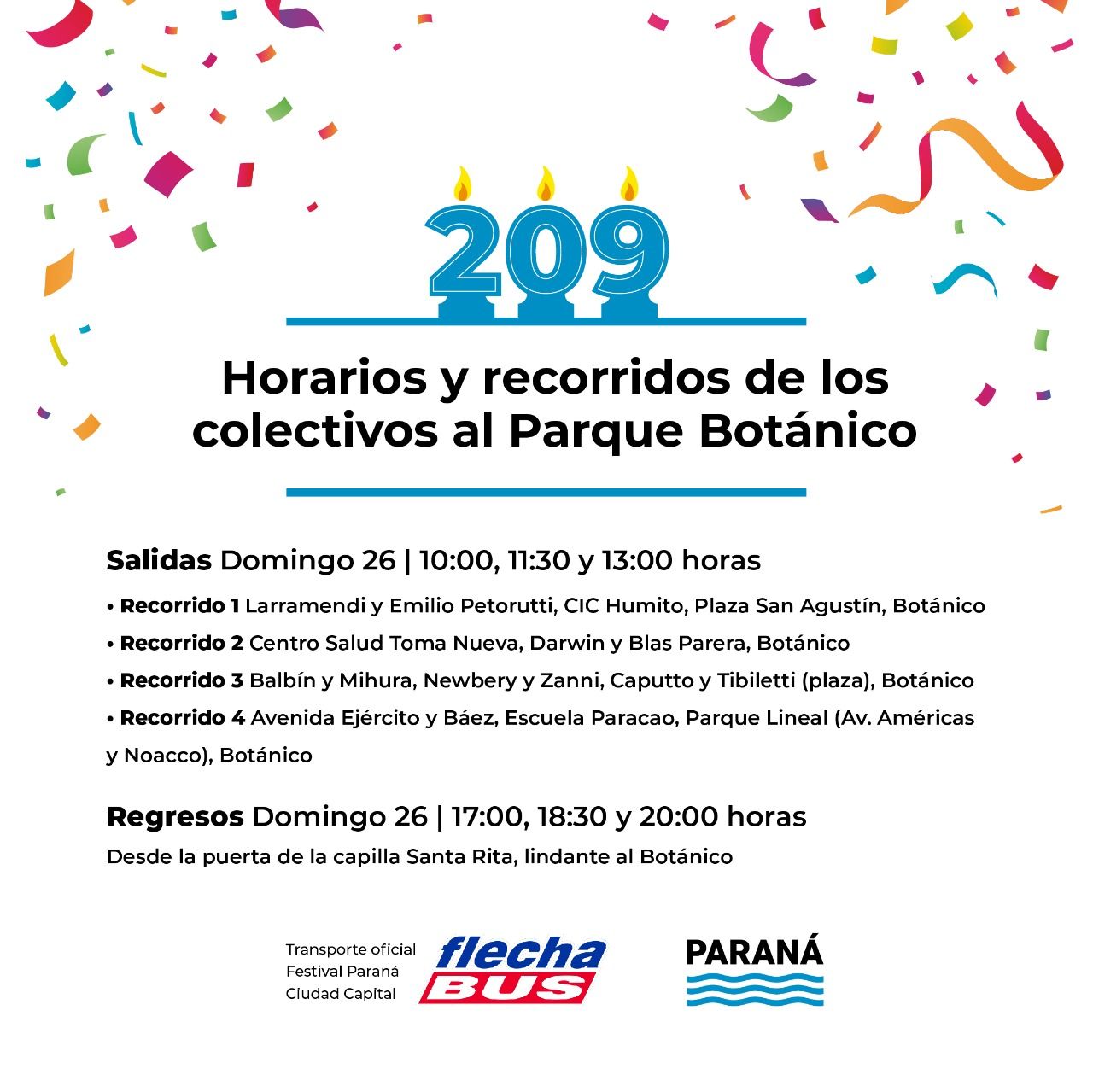 Desde el Parque Botánico retornarán: a las 17, 18.30 y 20 aproximadamente. Cada micro contará con un cartel de referencia.