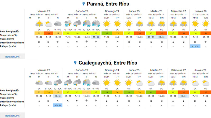 La advertencia abarca los departamentos Diamante, La Paz, Nogoyá, Paraná, Villaguay, Gualeguay y Victoria; además de zonas de Buenos Aires, Santa Fe, Córdoba y La Pampa.