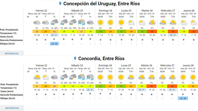 El Servicio Meteorológico Nacional –SMN– emitió esta madrugada una alerta amarilla por tormentas. Las mismas alcanzarían su mayor intensidad durante las primeras horas del sábado en la zona oeste de Entre Ríos.