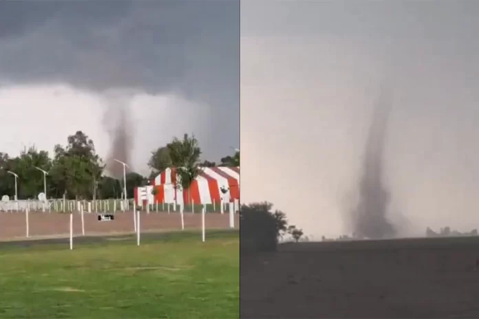 El paso de un tornado en medio de una tormenta de lluvia y viento causó sorpresa y por momentos preocupación este martes entre los vecinos de la ciudad cordobesa de Marcos Juárez, que compartieron imágenes del fenómeno.