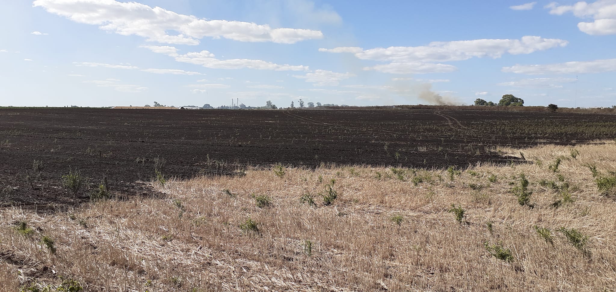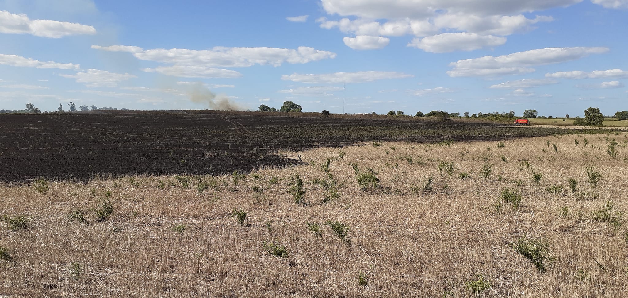 Según pudo recabar Informe Litoral, el foco ígneo se habría iniciado cuando en un campo quisieron quemar chilcas, pero el fuego, producto del viento y varios días sin precipitaciones, se salió de control y se cruzó a lotes vecinos afectando el rastrojo de trigo y soja. Todo sucedió en la zona de la planta de silos de La Agrícola Regional.