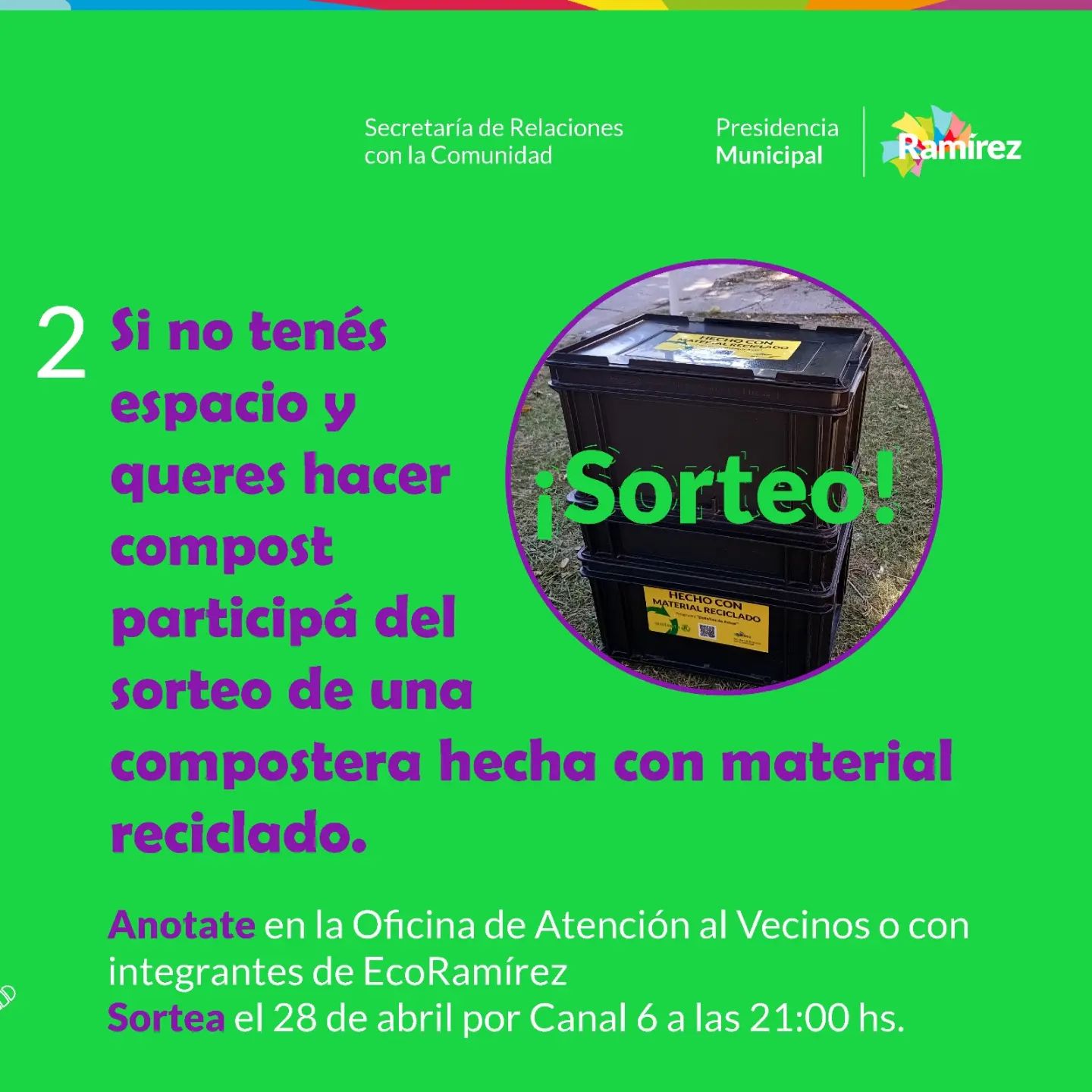 Además, aquellos que no cuenten con un espacio donde puedan realizar el compostaje, el viernes 28 sortearán una compostera hecha de material reciclado.
