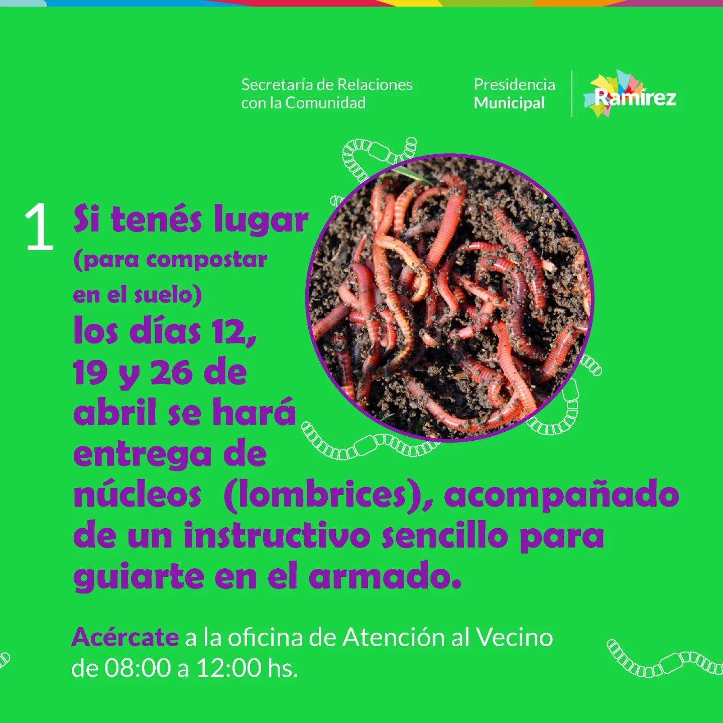 Los días miércoles 12, 19 y 26 de abril entregarán lombrices californianas para que los vecinos pueden compostar sus residuos.