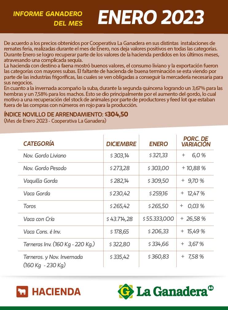 Informe ganadero de enero de 2023 de Cooperativa La Ganadera