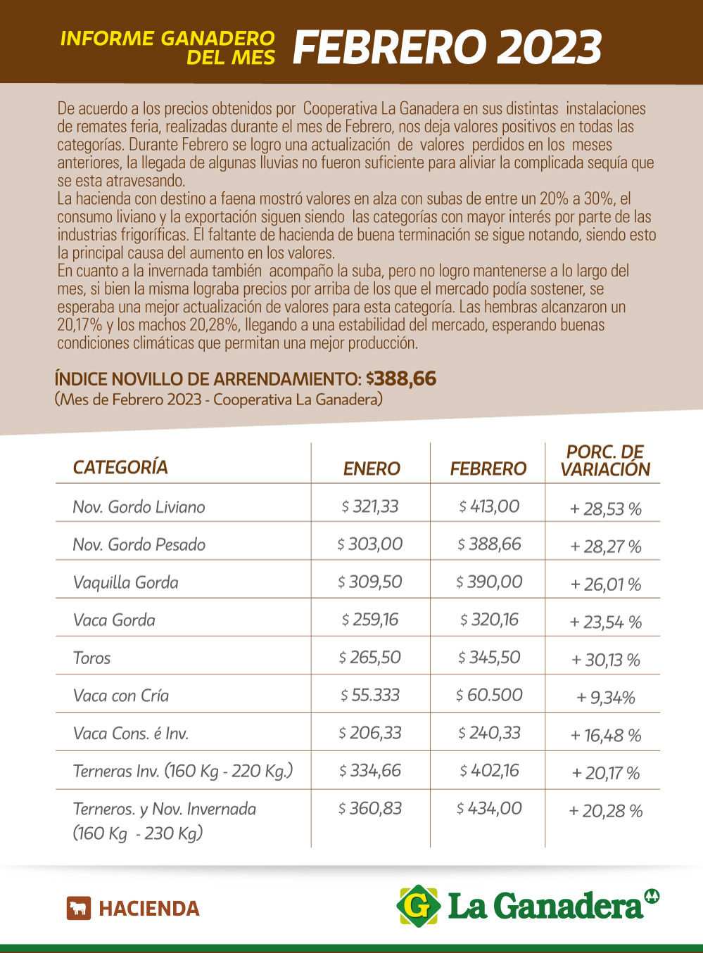Informe ganadero de febrero de 2023 de Cooperativa La Ganadera