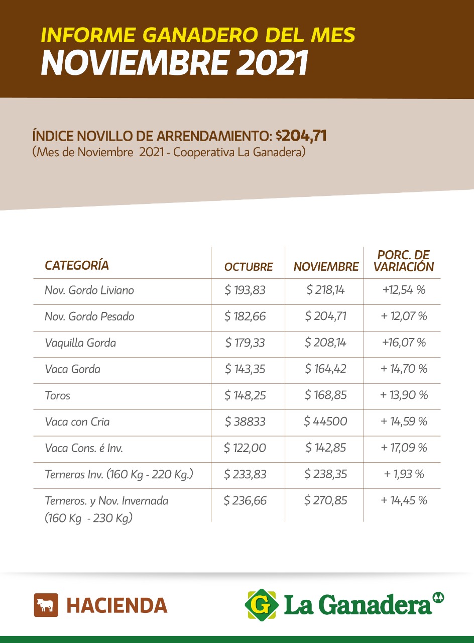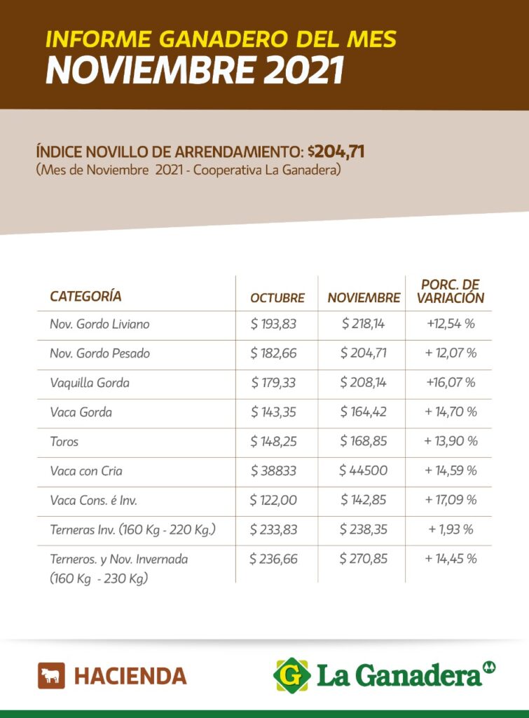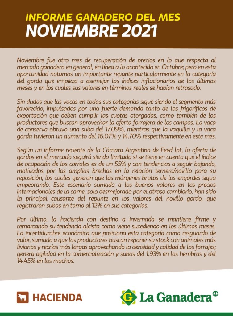 Informe ganadero de noviembre de 2021 de Cooperativa La Ganadera