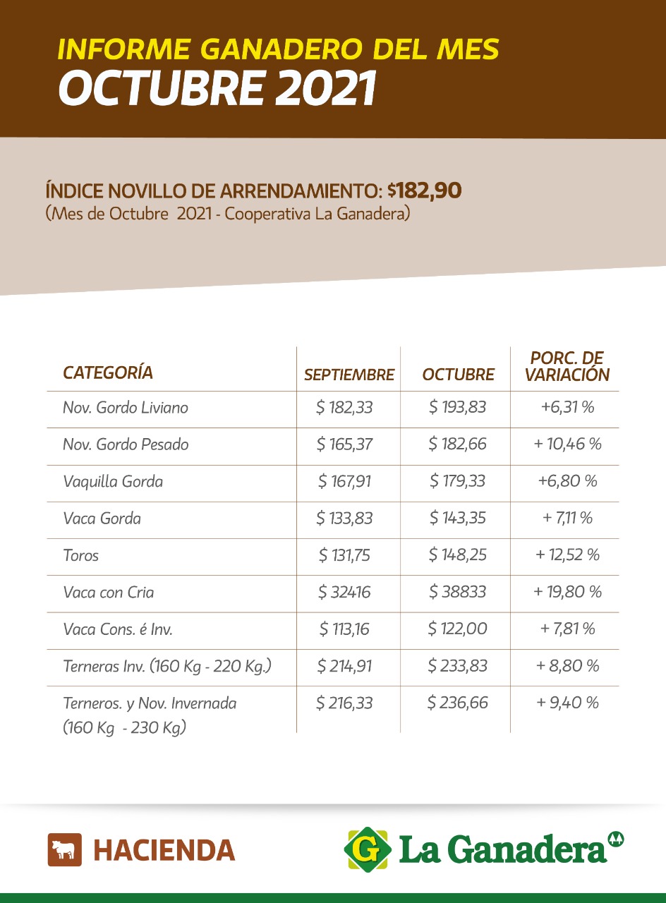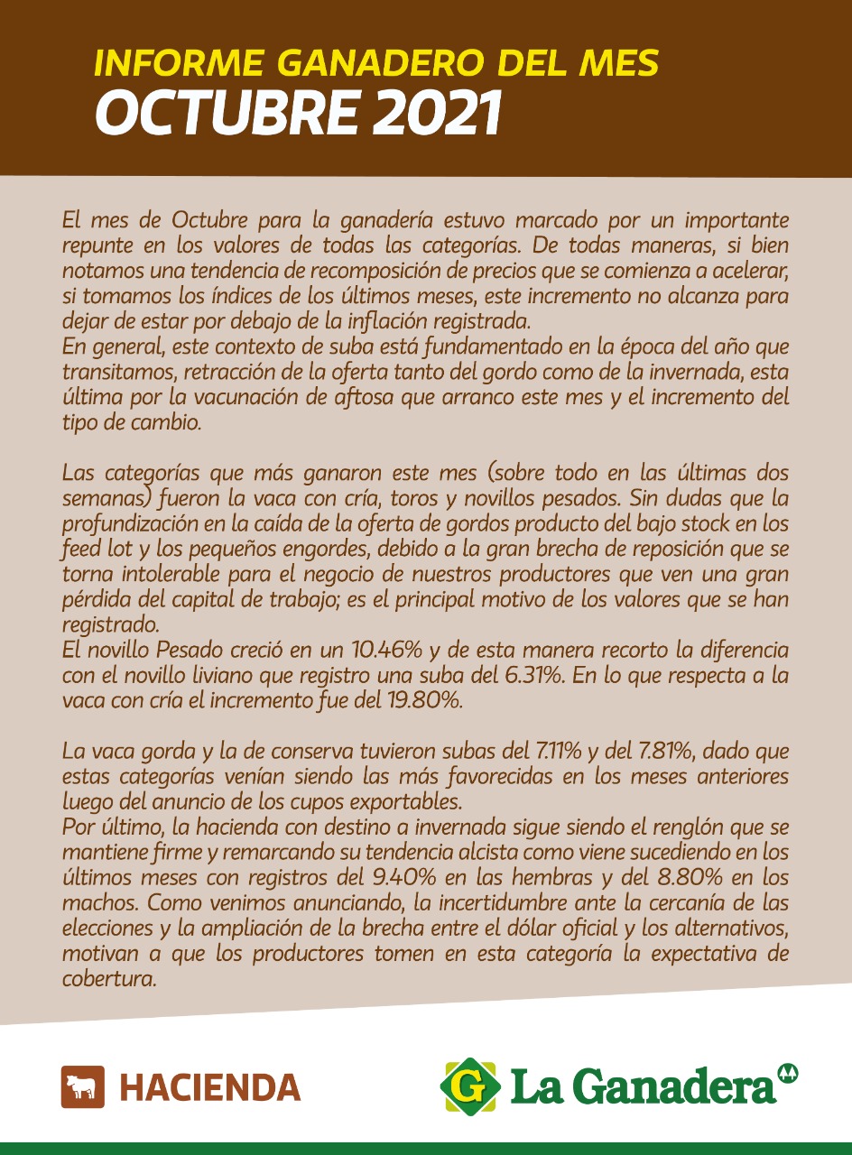 Informe ganadero de octubre de 2021 de Cooperativa La Ganadera