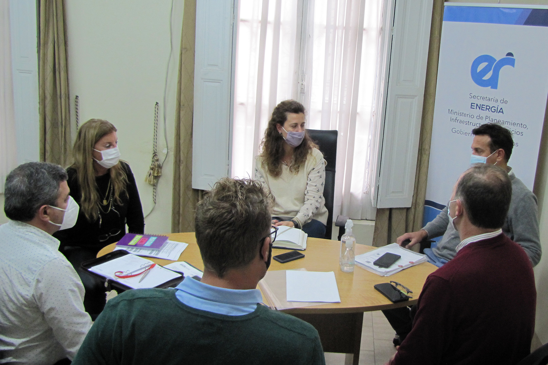 La secretaria de Energía, Ing. Silvina Guerra, junto a la senadora provincial por el departamento Diamante, Claudia Gieco, el diputado provincial Reynaldo Cáceres, y el intendente de Valle María, Mario Sokolovsky, abordaron este martes los requerimientos técnicos de la presentación de la solicitud de ampliación de red de gas natural.