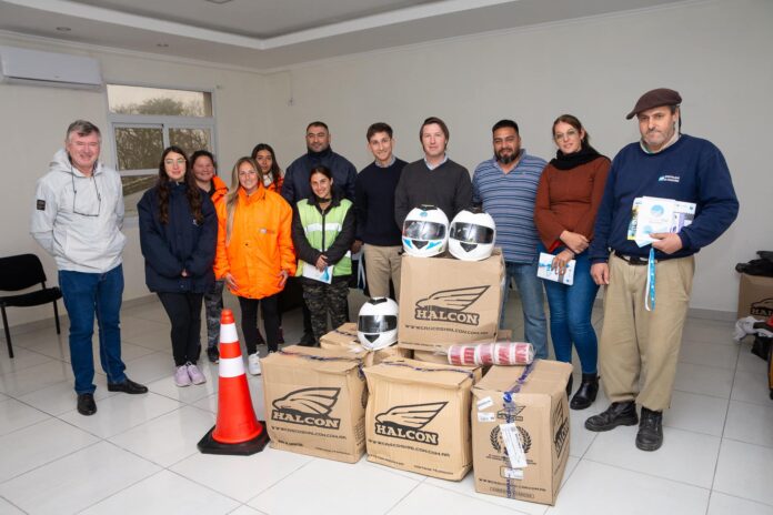 En cuanto al detalle de los materiales recibidos se destacó que fueron: 30 cascos, 10 conos y cintas.