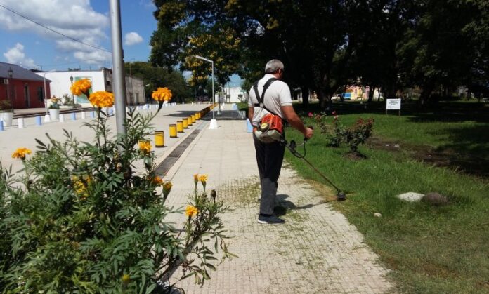 Un intendente entrerriano aprovechó el feriado y cortó el pasto del pueblo. El jefe comunal de la ciudad de San Jaime de la Frontera, Antonio Rodríguez se calzó una motoguadaña y salió a la plaza de su pueblo a cortar el pasto