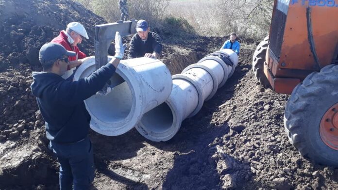 - Cambios de tubos de alcantarilla. La DPV dispuso la maquinaria y la Junta de Gobierno aportó los tubos necesarios. Colaboradores y vecinos que se sumaron a las tareas.