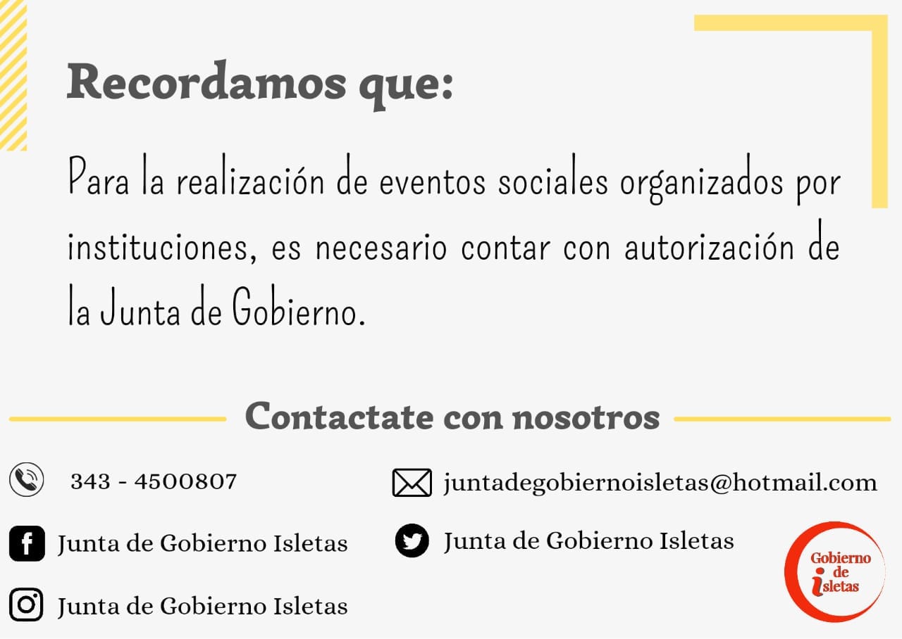 Desde la Junta de Gobierno de la localidad de Isletas, recuerdan que, independientemente del levantamiento de las restricciones por la pandemia, todas las instituciones deben solicitar la correspondiente autorización antes de organizar un evento social.