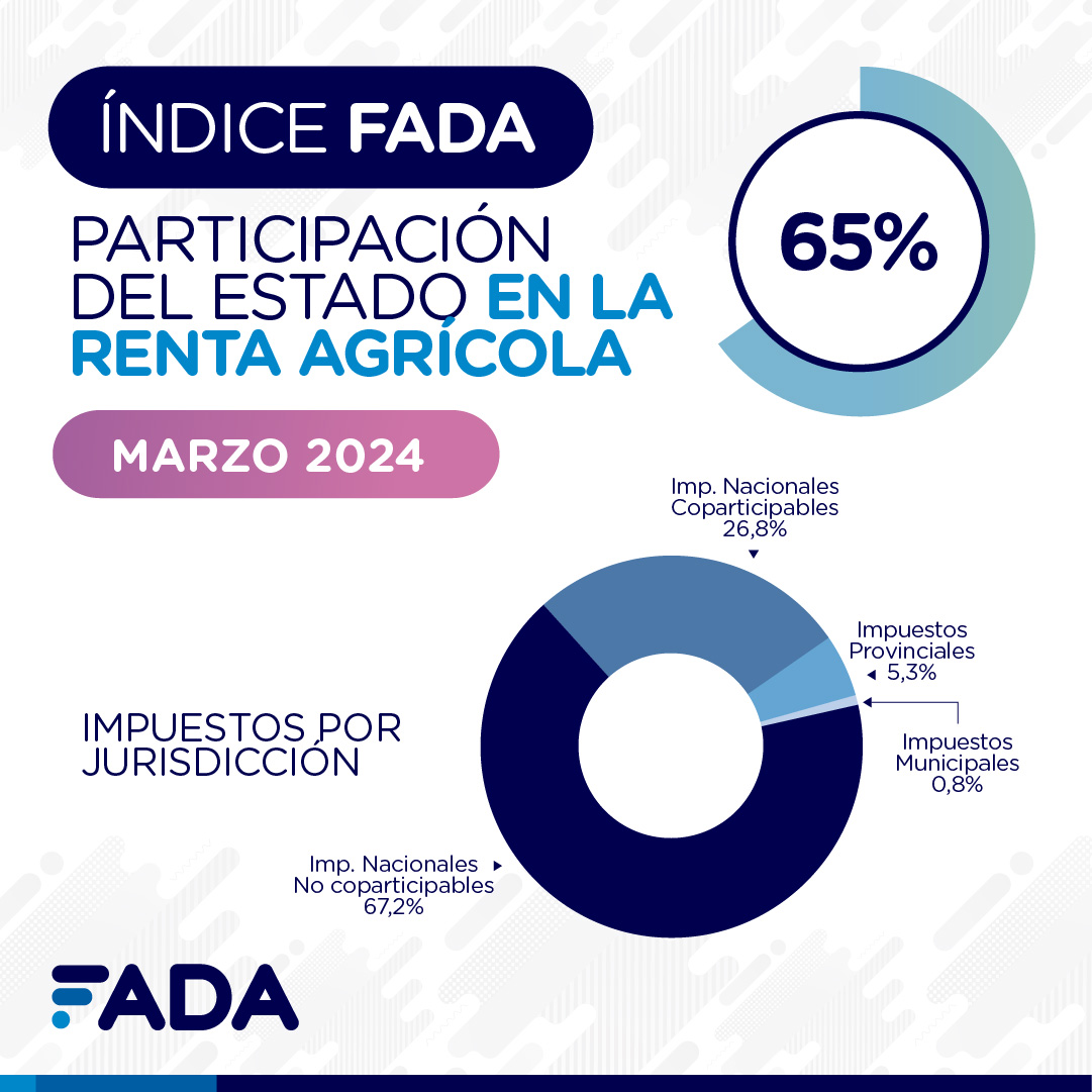 «Si cae el precio o suben los costos, la renta se achica. Pero el tema es que los impuestos no se reducen en la misma proporción que la renta, es más, casi que no lo hacen. Es por esto que cuando el valor cae o los costos suben, la participación de los impuestos sobre la renta aumenta», señaló. En tal sentido, aclaró que «los impuestos no se reducen en la misma proporción que la renta, es más, casi que no lo hacen». «Es por esto que cuando el valor cae o los costos suben, la participación de los impuestos sobre la renta aumenta. Esto es lo que arrojó esta medición, por eso el Índice FADA es 6 puntos mayor que la última edición», precisó.