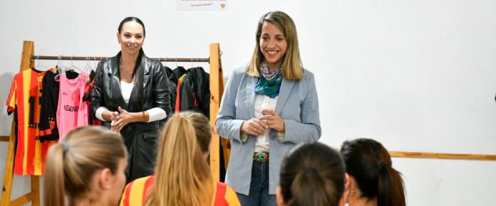 Stratta recorrió el club y observó la obra de riego artificial, recientemente realizada con apoyo del gobierno provincial. De la actividad participaron también el secretario de Deportes de la Provincia, José Gómez; el coordinador de Trabajo Decente de la Secretaria de Trabajo y Seguridad Social de Entre Ríos, Ariel Villanueva; la titular del Observatorio de Géneros y Derechos Humanos del Senado, Sigrid Kunath; la concejala de Paraná Fernanda Facello; y la empresaria María José Armandola. También participaron integrantes del plantel de fútbol masculino, directivos y allegados al club.
