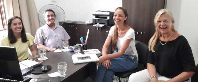 La subsecretaria de Desarrollo Humano y Políticas del Cuidado del Ministerio de Desarrollo Social, Muriel Stablun; la supervisora del Plan Nacional de Primera Infancia, Mabel Vitali; el intendente de Aldea Brasilera, Hugo Ramírez, y la responsable de Desarrollo Social de la Municipalidad, Gisela Guelli, mantuvieron una reunión de trabajo con el objetivo de formular el proyecto para el ingreso al Plan Nacional de Primera Infancia del CDI que está en construcción.