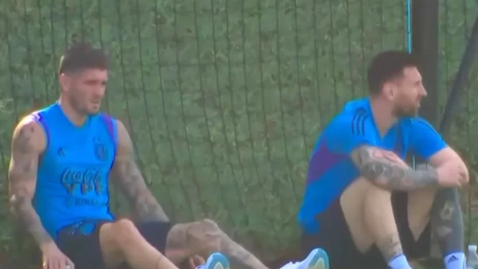 Mientras el actual volante de Benfica realizaban movimientos junto a otros compañeros como Julián Álvarez, Cuti Romero y el resto de los que no fueron utilizados por el DT, se produjo una aparición en la práctica. A pesar de no tener que salir al campo de juego, ya que los titulares o los que jugaron más minutos harán un trabajo de recuperación durante la tarde en Qatar, tanto Lionel Messi como Rodrigo De Paul salieron para acompañar al resto de los futbolistas argentinos.