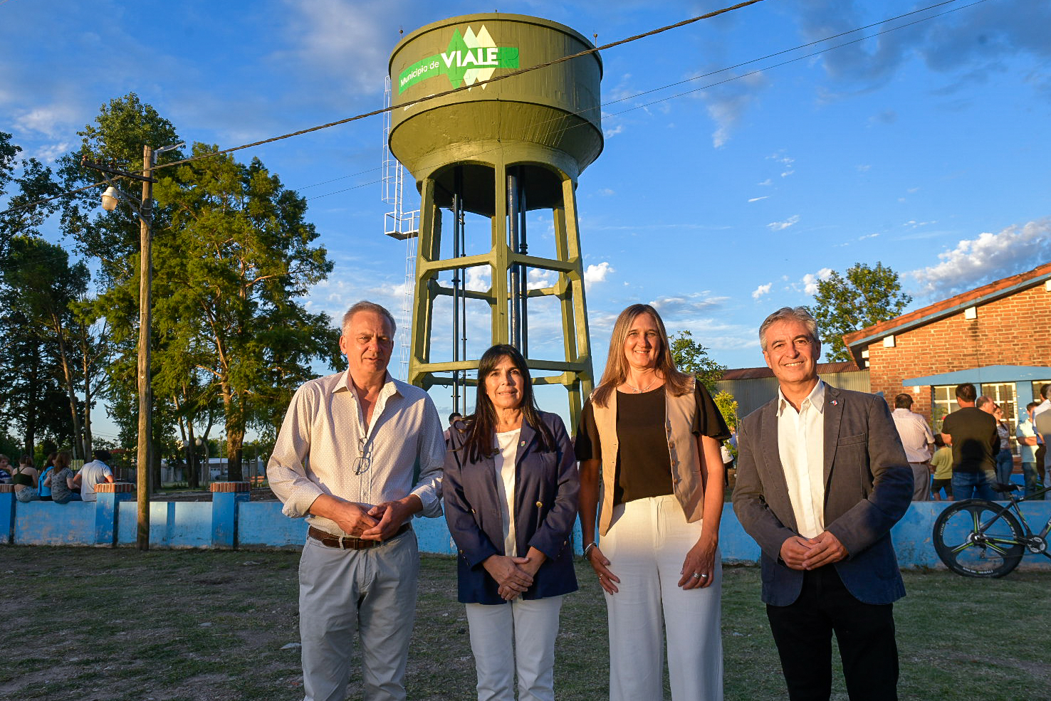 Estuvieron presentes, además, autoridades de la Cámara de Senadores de Entre Ríos; Miguel Heft, secretario de Gobierno Locales; Oscar Pintos, director General de Hidráulica y Obras Sanitarias; el intendente de Crespo, Marcelo Cerutti; concejales, coordinadores de las distintas áreas de la Municipalidad de Viale, autoridades religiosas, policiales y vecinos.