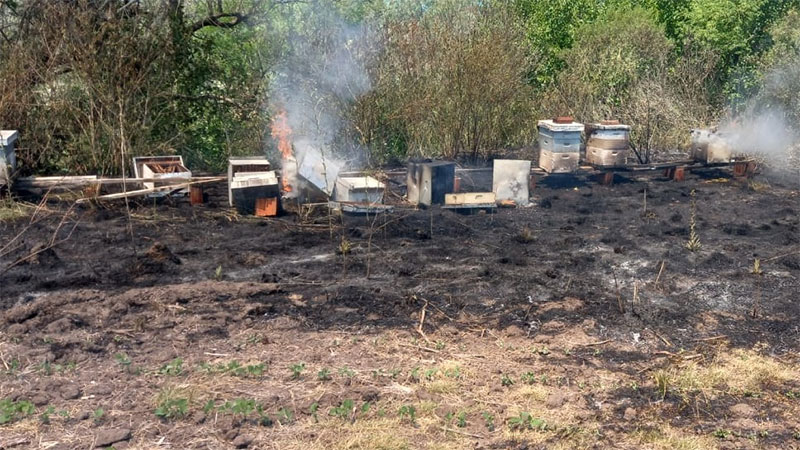 Vegetación nativa, rastrojo de trigo, parte de una siembra de soja y árboles de nuez pecán fueron parte de lo que arrasaron las llamas. Actuaron bomberos locales, de Crespo y personal del municipio.