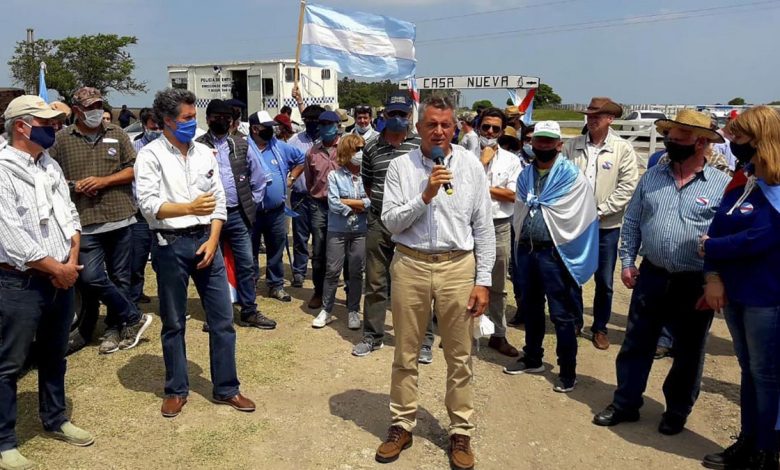 Etchevehere estuvo acompañado en la tranquera por varios productores agropecuarios y el senador nacional Alfredo De Angeli.