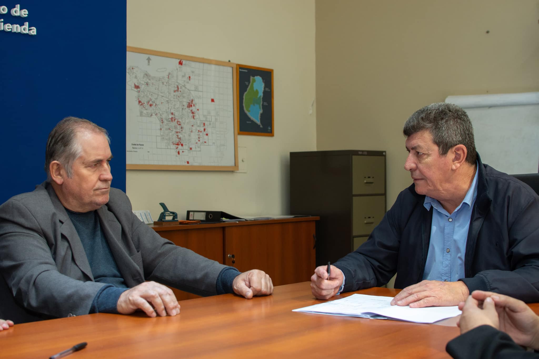Acompañado por el secretario de Gobierno, Ramiro Muñoz, abordaron la posibilidad de iniciar un programa reducido de viviendas financiado conjuntamente entre municipio y provincia.