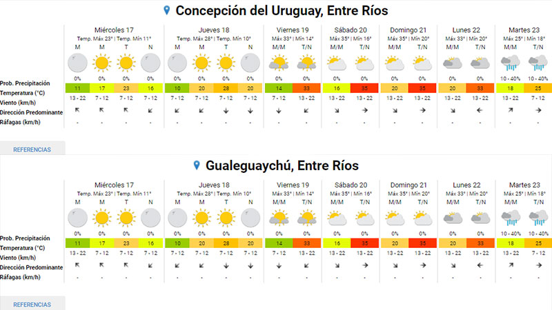 Para el jueves se esperan temperaturas máximas cercanas a 30 grados, mientras que el viernes se superaría esta marca y ya para el fin de semana se estiman registros de hasta 35 grados en Entre Ríos.