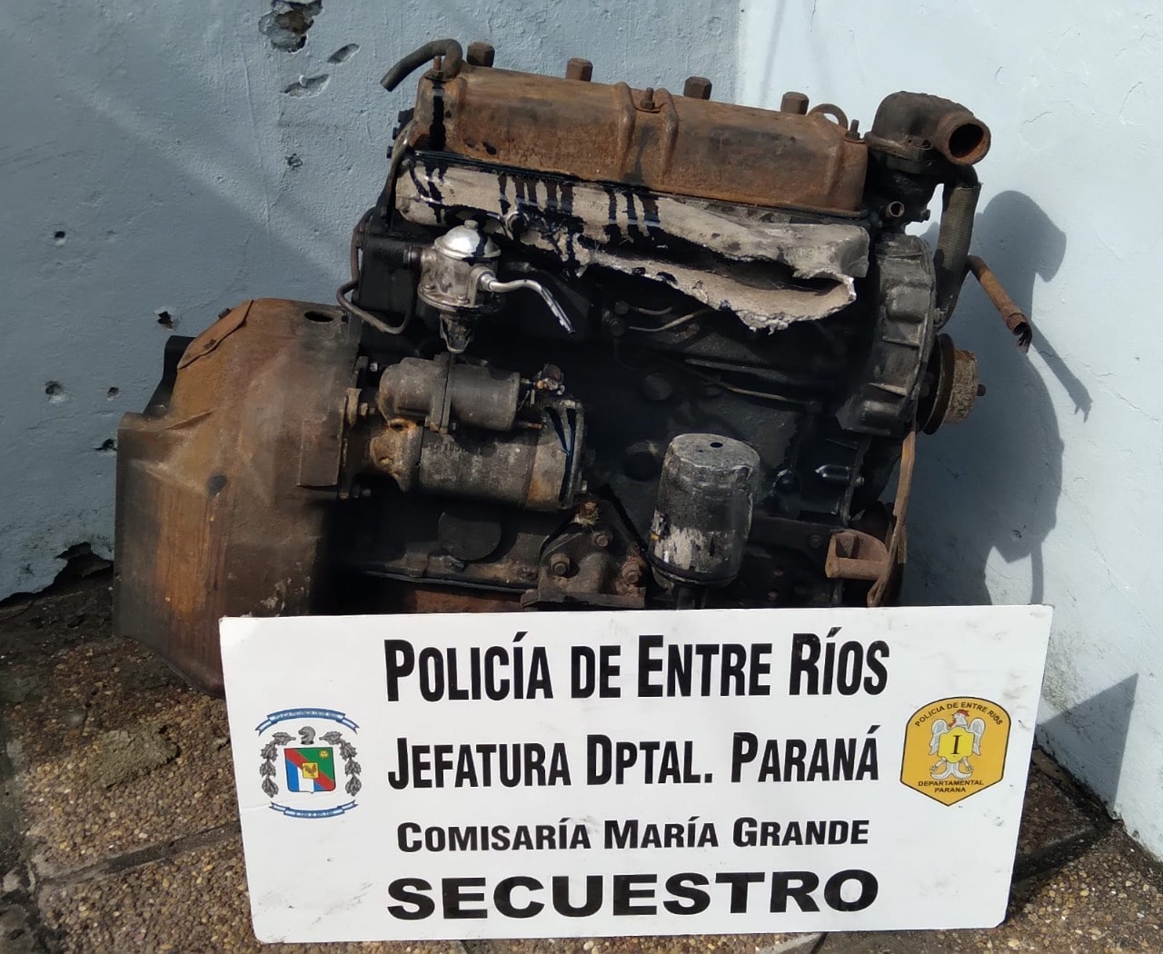 El conductor llevaba en la caja del rodado, un motor Perquins gasolero, el cual presentaba adulteración en el grabado de su numeración.