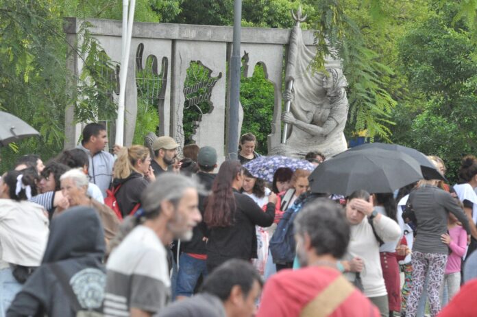 Carlos Guastavino sostuvo el cartel de su hermano Manuel, que indicó que “fue secuestrado en el mes de octubre de 1976 en Buenos Aires y nunca más supimos de él. Militábamos los dos en Buenos Aires. Acá estamos en la pelea y en un gran recuerdo, tratando de hacer fuerza ante este Gobierno vende patria, traidor y que persigue a los más desposeídos y a los jubilados”.