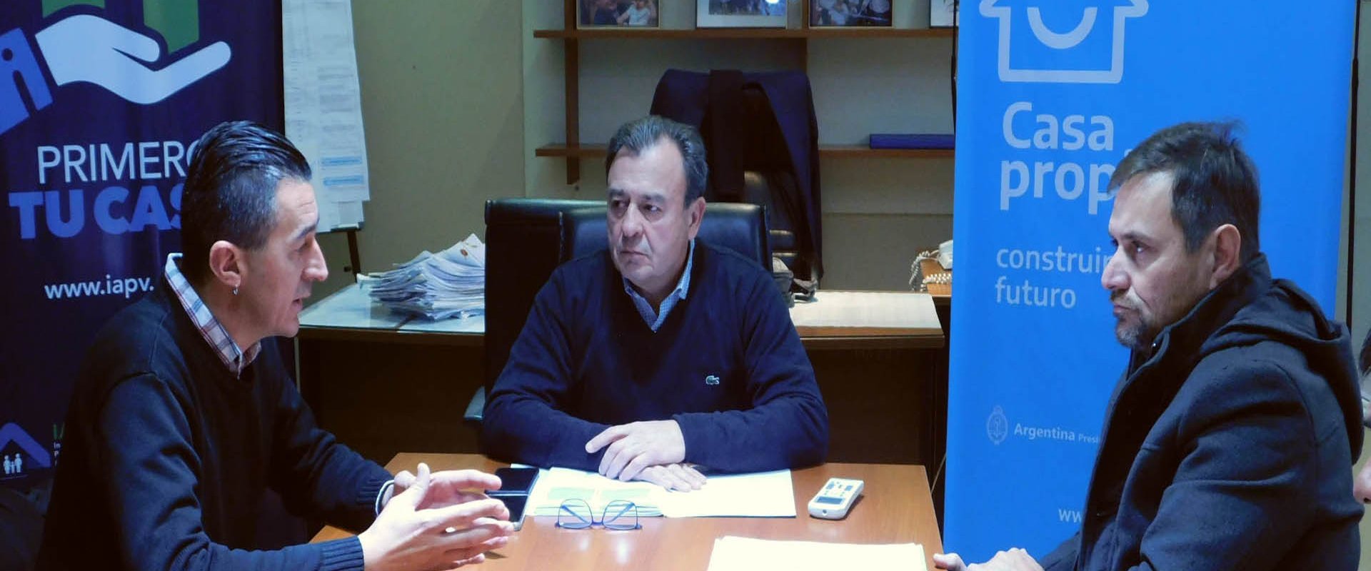 El encuentro, que se desarrolló en la sede del Instituto Autárquico de Planeamiento y Vivienda (IAPV), contó con la presencia del subsecretario de Asuntos Municipales de la provincia, Daniel Krämer, y el gerente técnico, Martín Arredondo.