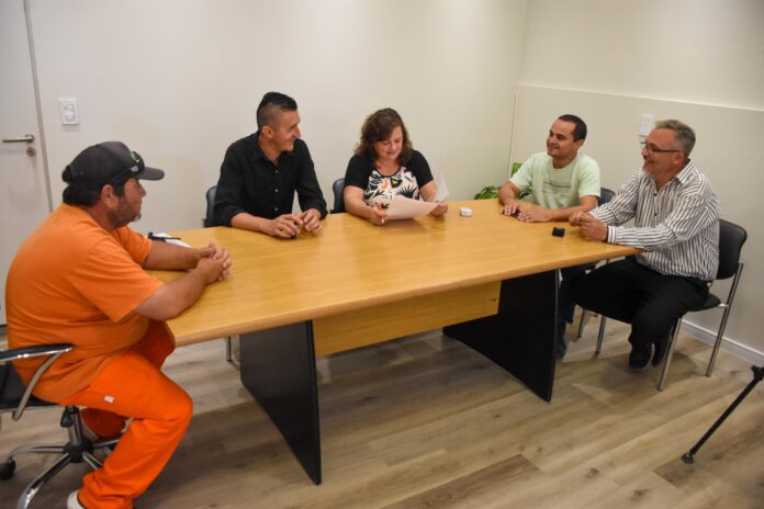 La reunión fue encabeza por la intendenta, Flavia Pamberer; el viceintendente, Carlos «Tito» Troncoso; el secretario de Gobierno y Hacienda, Pablo Rode e integrantes del Sindicato, encabezado por su titular, Marco Romero.