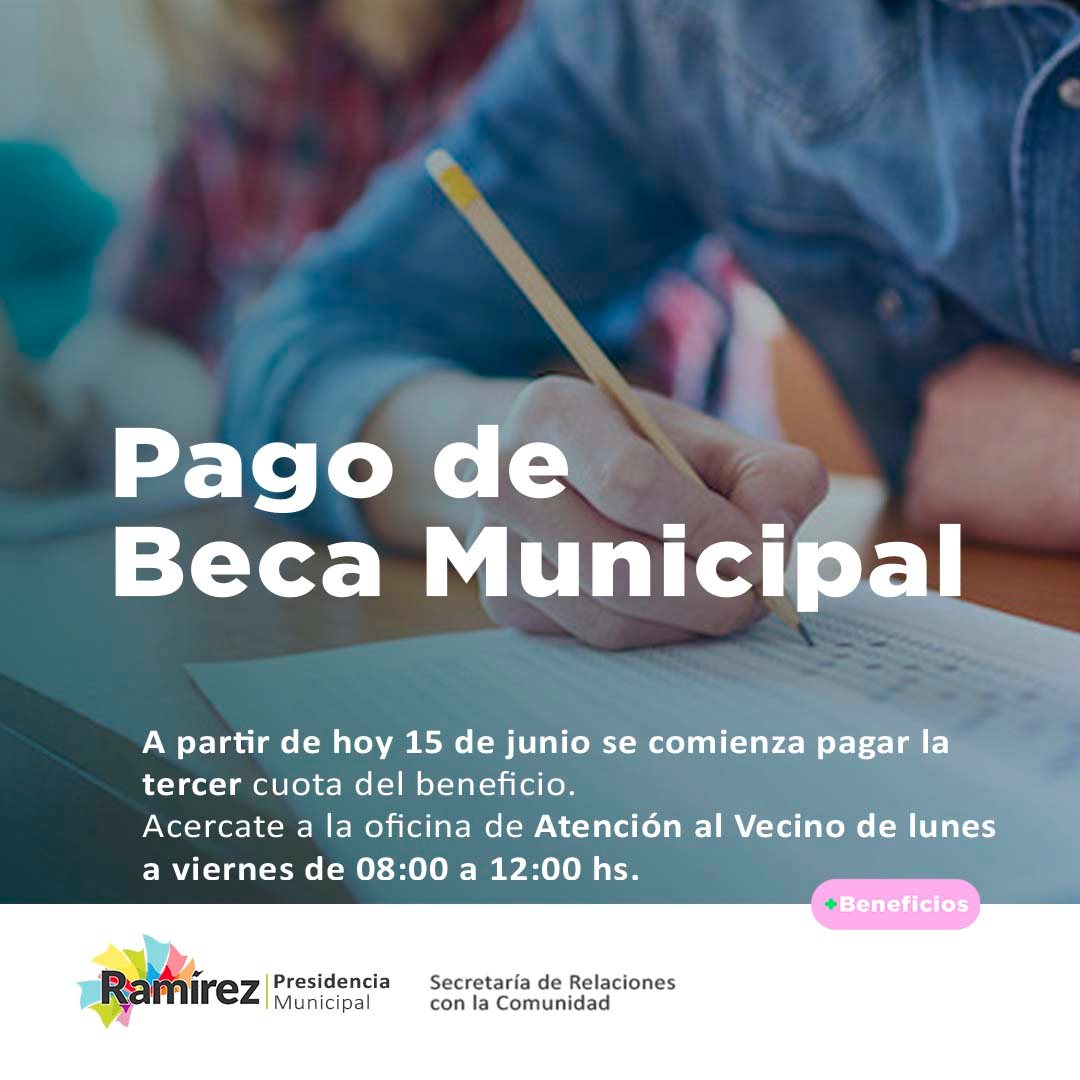 Desde el jueves 15 de junio se paga la beca municipal en General Ramírez.