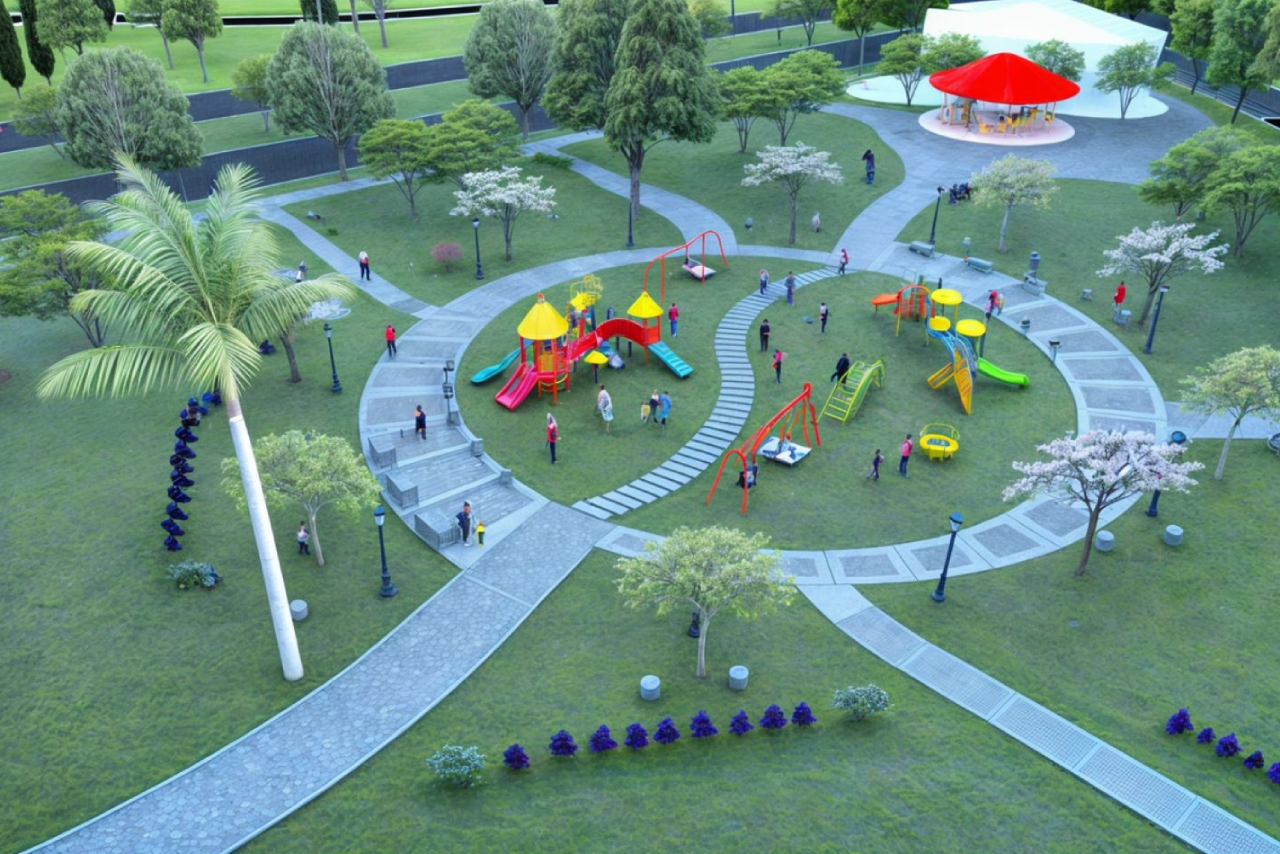 La renovación del parque también incluye la instalación de nuevo equipamiento urbano y juegos infantiles modernos y seguros, destinados al disfrute de niñas, niños y sus familias, fomentando la recreación y el encuentro comunitario.