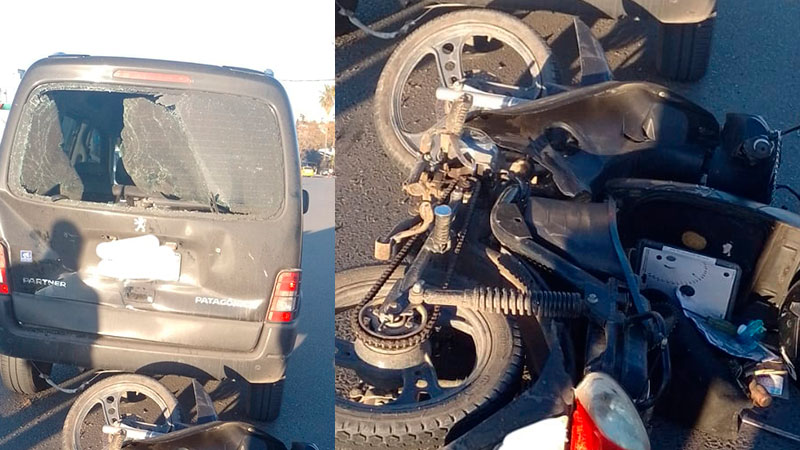 Un vehículo marca Peugeot, modelo Partner, conducido por un joven de 25 años de edad, circulaba por calle Larramendi en sentido este-oeste. Al poner la luz de giro para ingresar a un supermercado, fue colisionado en la parte de atrás, por una moto marca Zanella, modelo ZB, conducido por un ciudadano de 47 años de edad, quien impactó en la luneta.
