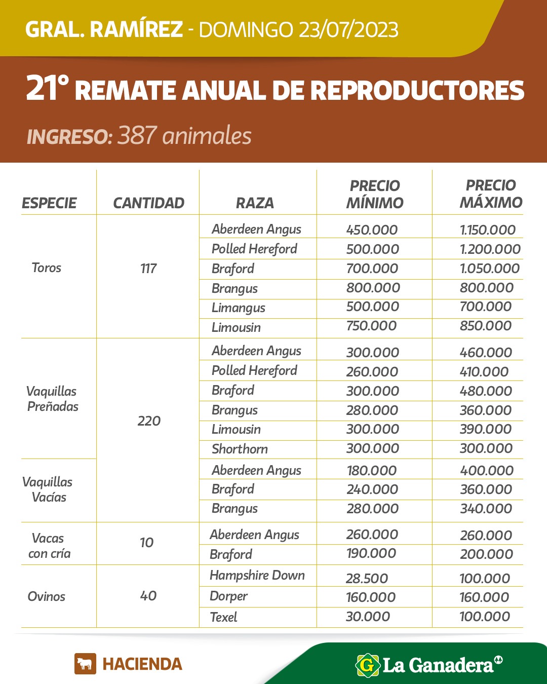 El 21º Remate Anual de Reproductores se llevó a cabo el domingo 23 de julio en las instalaciones de remate feria de Cooperativa La Ganadera en General Ramírez.