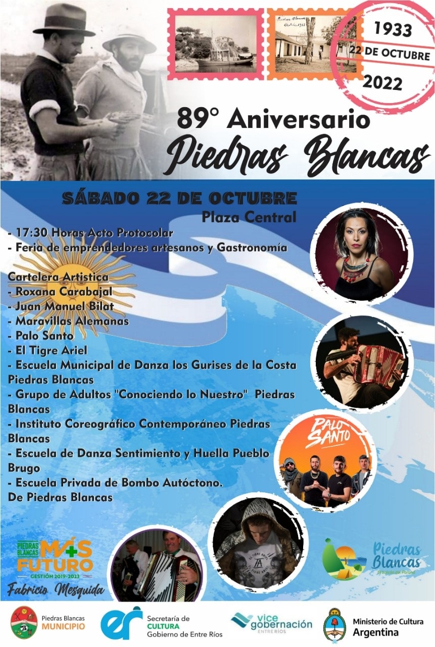 Organiza la Municipalidad de Piedras Blancas, con el acompañamiento de la Secretaría de Cultura de Entre Ríos, la Vicegobernación y el Ministerio de Cultura de la Nación.