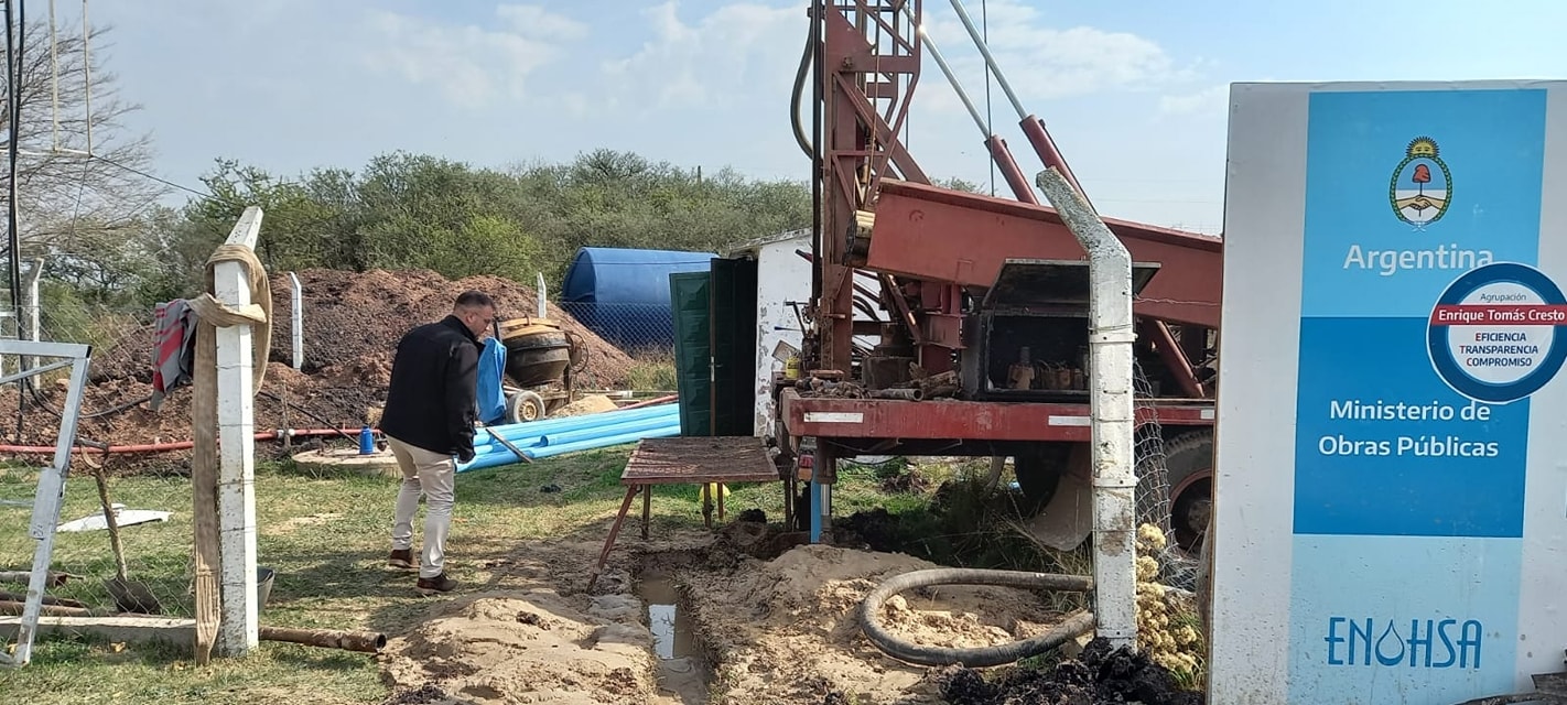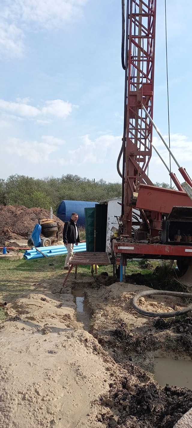 El presidente municipal, Fabricio «Gino» Mesquida, recorrió los trabajos de perforación para un nuevo pozo de agua potable en Barrio El Progreso.