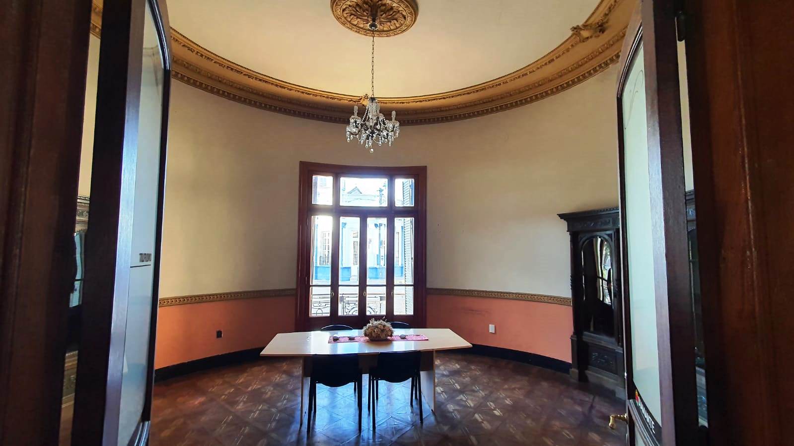 Este salón presenta un vitral curvo traído de Francia, que sigue la forma del muro. A través del hall se accede al “comedor”, hoy oficinas, el que adopta una planta oval poco convencional.